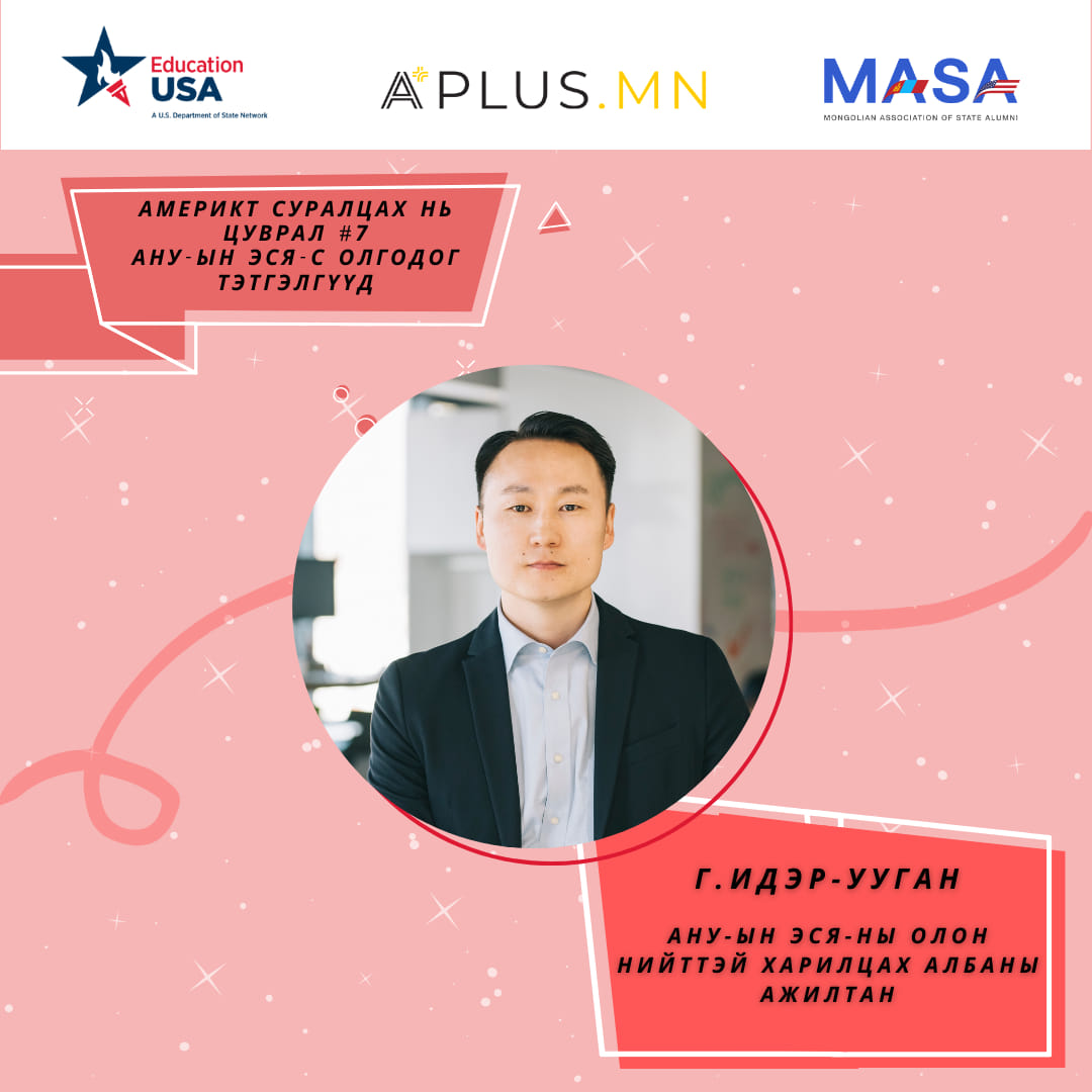 EducationUSA Mongolia болон Америкт Төгсөгчдийн Холбоо (MASA) нь Aplus боловсролын платформтой хамтран АНУ-ын их дээд сургуулиуд болон тэтгэлэгт хөтөлбөрүүд, Америкт сурах алхмуудын талаар мэдээлэл өгөх зорилготой 20 цуврал лайв вебинарыг 2021 оны 1-р сарын 4-29-ны Даваа-Баасан гарагийн хооронд өдөр бүр зохион байгууллаа. Тус вебинарын дугааруудыг aplus.mn хуудаснаас үнэ төлбөргүй хүлээн авч үзэхээс гадна MASA болон EducationUSA Mongolia-ийн FB page хуудаснаас лайв үзэх боломжтой.